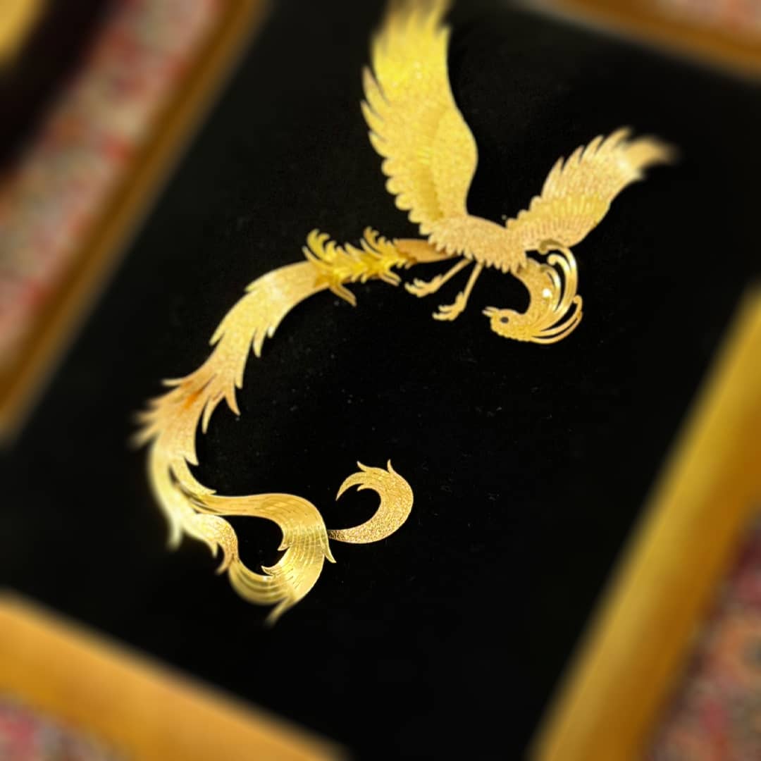 تابلو طلا سیمرغ ترمه یکی از آثار فاخر و ویژه ی میداس گالری است که تلفیقی از هنر سنتی ایرانی و زیبایی مدرن را به نمایش می گذارد. در این تابلو، نقش سیمرغ اسطوره ای با دقت و ظرافت روی زمینه ترمه طراحی شده و با ورق طلای اصل تزئین شده است تا جلوه ای لوکس، درخشان و چشم نواز ایجاد شود.طرح سیمرغ، نماد حکمت، قدرت و رستگاری در فرهنگ ایرانی است و ترکیب آن با الگوی سنتی ترمه، جلوه ای ماندگار و فاخر به فضای شما می بخشد. درخشش طلای ناب باعث می شود تابلو به عنوان نقطه ی کانونی دکوراسیون در هر محیطی خود نمایی کند.